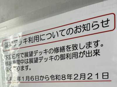 今回訪れた時には、展望デッキが修繕中で海まで行くことができませんでした。 また春ごろにでも、リベンジしに行ってみたいなと思います。