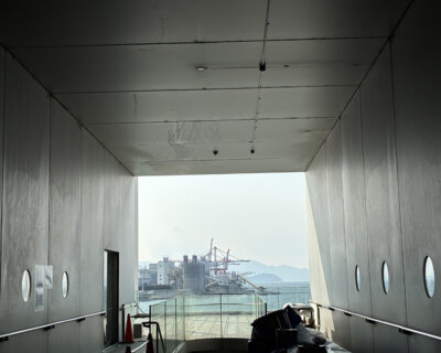 建物が都市の軸線を遮るのではなく、ガラス張りの通路として開放することで、視線が海へとまっすぐ抜けるように設計されているようです。