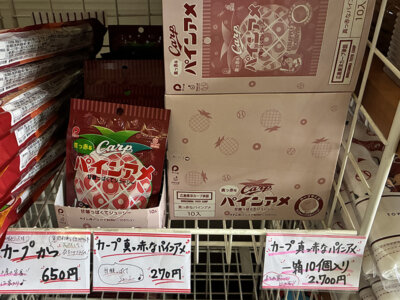 - カープ 真っ赤なパインアメ 1袋:270円 / 1箱(10袋入り):2,700円
