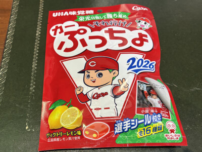 広島県産レモン果汁を使用したカープコラボのぷっちょです。