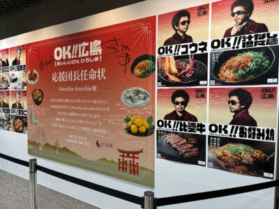 3月13日からシャレオ西通りに設置されている、奥田民生さんと吉川晃司さんのユニットOoochieKoochie(オーチーコーチー)直筆サイン入りの巨大任命状を見に行ってきました。
